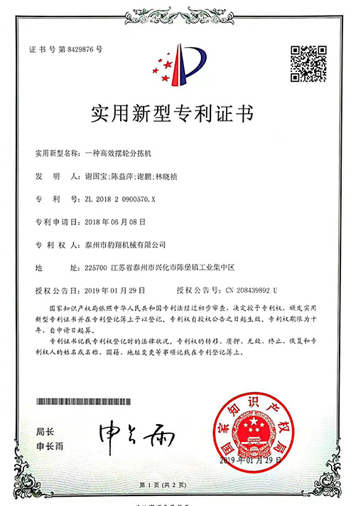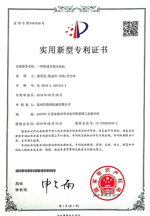 实用新型专利证书