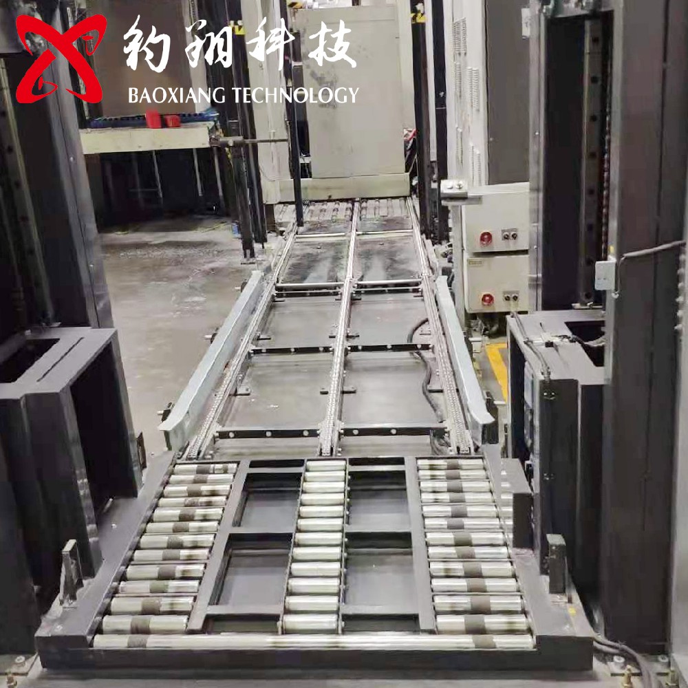 2.采用顶部减速电机驱动链轮,由4根链条、两侧导轮导向将载货输送线提升至指定高度,水平输送至对应的输送线。