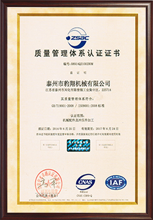 质量管理体系认证证书